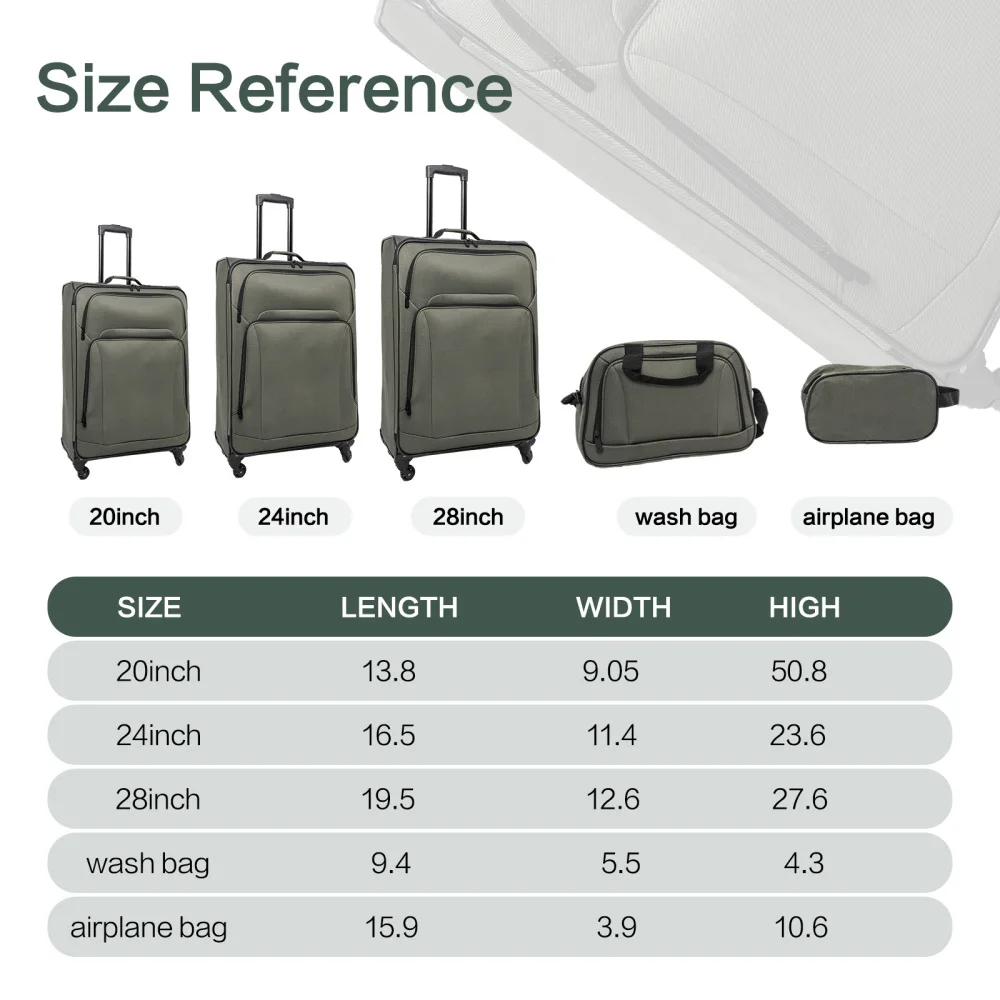 - [Complete Luggage Set] :This 5-piece luggage set includes a 20-inch, 24-inch, and 28-inch suitcase, along with a weekend travel bag and a toiletry bag, providing versatile options for short trips or long journeys.